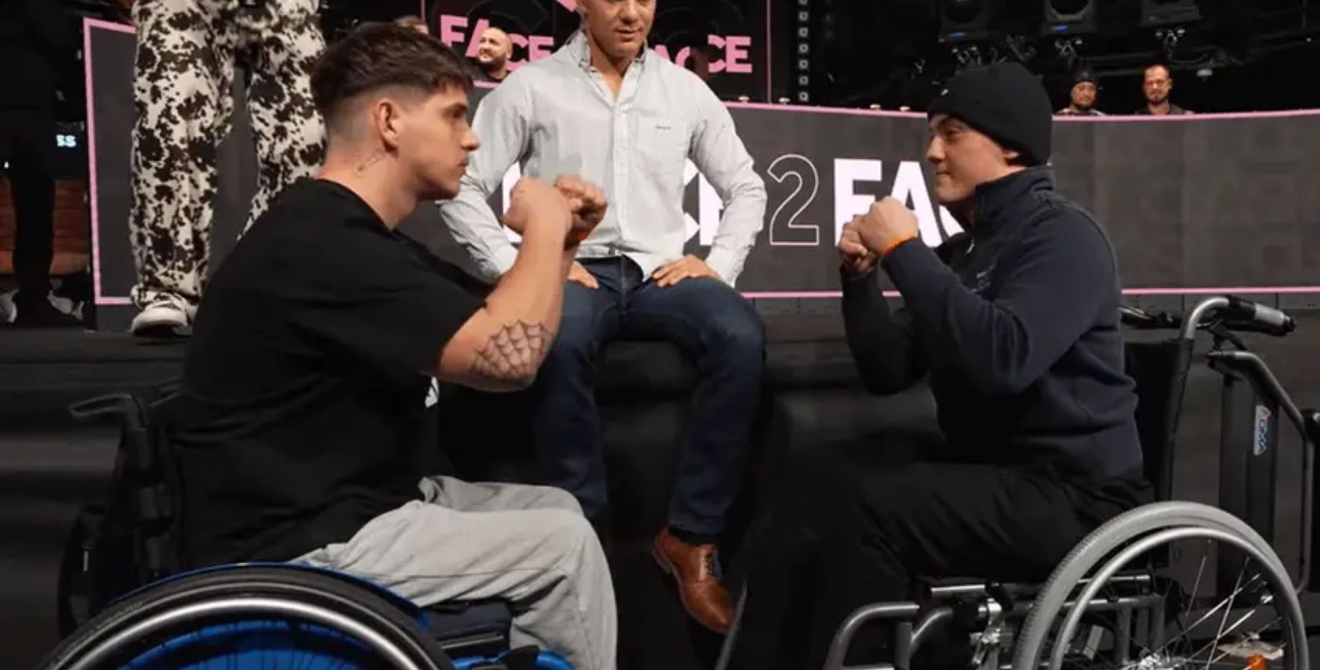 Součástí karty bude souboj vozíčkářů, jehož součástí bude i Denis Drbal, který ještě nedávno chodil, ale bohužel měl hodně ošklivý úraz. "Stalo se mi to v práci, když jsem jsem pálil vagón na půl a padly mi 4 tuny na nohy. Polámaly se mi kosti v nártu. Měl jsem extrémní štěstí, že ještě někdy budu chodit. Jsem vděčný, že budu chodit, ale chci to otočit ve svůj prospěch a chci z toho vytěžit co nejvíc. Jak říkal kolega, je to nuda ležet doma zavřený v pokoji. Přípava probíhá stejně, jen na vozíku - lapy, činky a podobně."