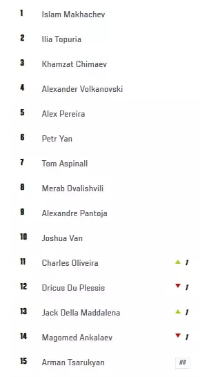 Z jednoho žebříčku se však Holloway bohužel ztratil. Přišel totiž o své 15. místo v rámci P4P žebříčku, tedy žebříčku napříč váhami, kde je nyní novou patnáctkou Tsarukyan.