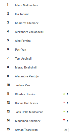 Z jednoho žebříčku se však Holloway bohužel ztratil. Přišel totiž o své 15. místo v rámci P4P žebříčku, tedy žebříčku napříč váhami, kde je nyní novou patnáctkou Tsarukyan.