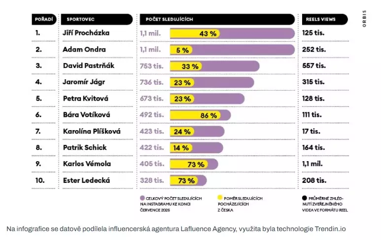 Forbes sestavil žebříček 10 nejsledovanějších sportovců, na jehož vrcholu je samozřejmě Jiří Procházka, kterému z 9. místa sekunduje i Karlos Vémola.