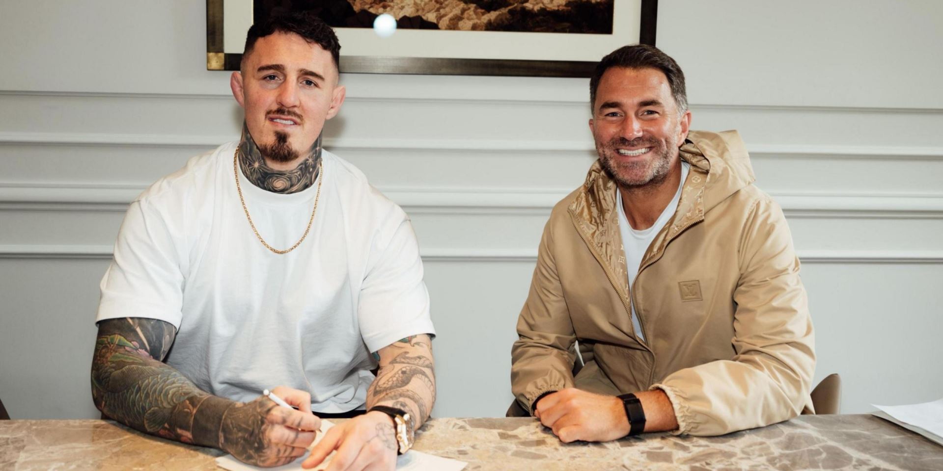 „Procházím si jeho smlouvu s UFC, mluvím o číslech, kterých vydělal za poslední tři nebo čtyři, pět zápasů, a jen tam sedím a říkám si: ‚Nemůžu uvěřit, co se děje,‘“ řekl Hearn v pořadu Ariel Helwaniho. „Nemůžu uvěřit, že Tomovi prakticky vypíchli oko a žě ho organizace podle mého názoru opravdu potrestala a že o něm šíří negativní narativ. Podstoupil jste tři operace a teď tam sedíte a litujete se, a já vidím, jaký jste člověk. Prostě jsem mu řekl: ‚Chci tě reprezentovat. Zapomeň na já vs. Dana. Chci tě reprezentovat.‘ Prostě jsme si dobře rozuměli a dohoda byla na světě.“