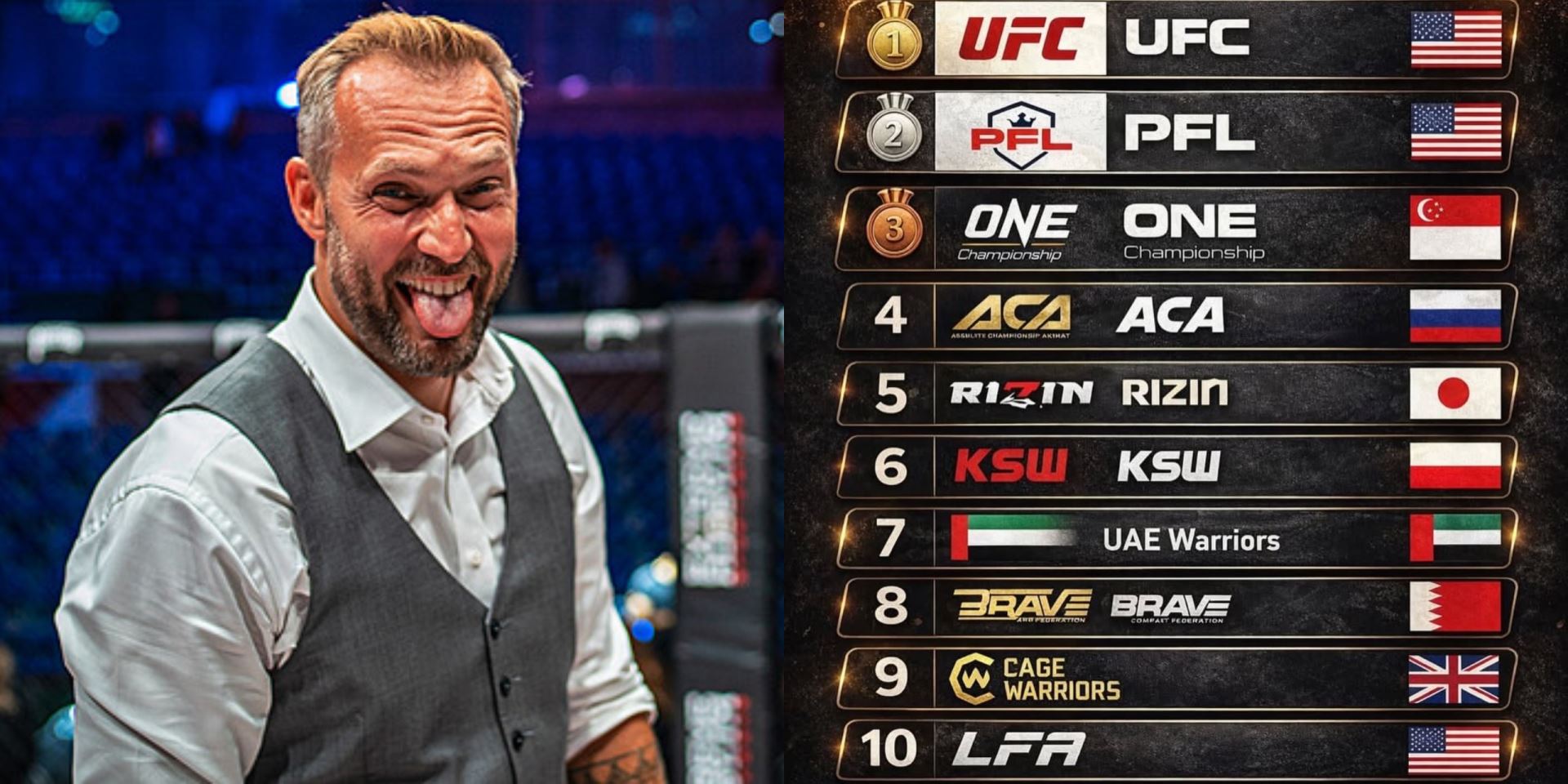 TOP 10: UFC, PFL, ONE, ACA, Rizin, KSW, UAE Warriors, Brave, Cage Warriors, LFA