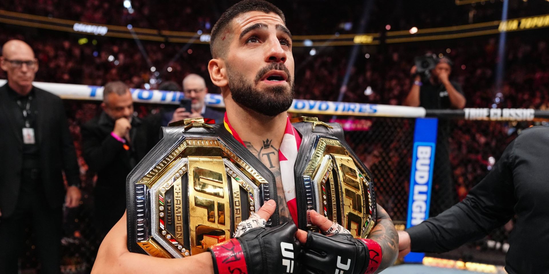 Na Silvestra Ilia Topuria sdílel fotografii, na které drží dva pásy UFC, a fanouškům sdělil, že v roce 2026 je soustředěnější než kdy jindy a že ho čekají ještě větší věci než v roce 2025.