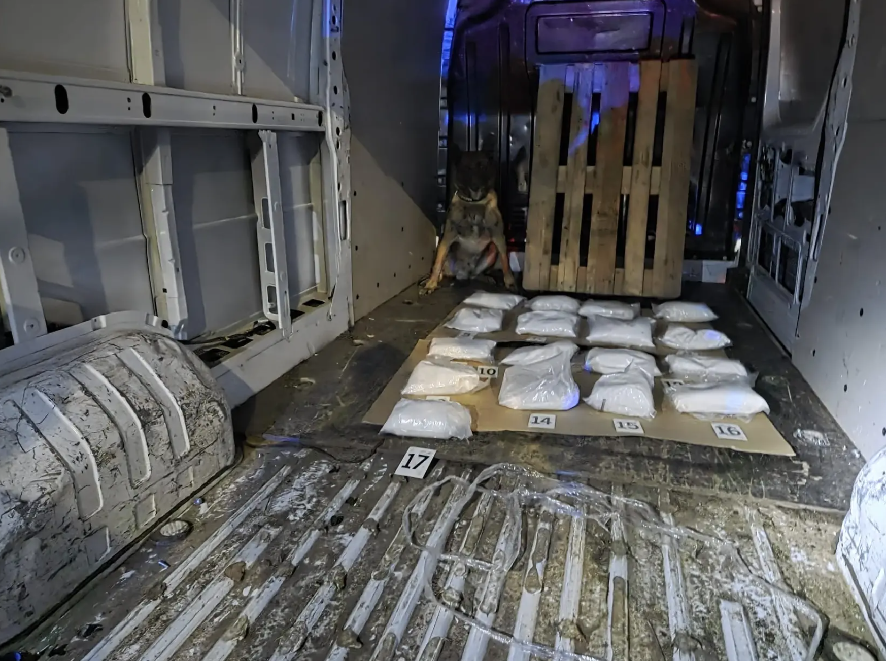 K zásahu došlo v noci ze čtvrtka na pátek na Pezinské ulici v Malackách. Policisté společně s příslušníky finanční správy kontrolovali zaparkovanou dodávku, ve které nakonec objevili sofistikovaně ukryté balíky s bílou krystalickou látkou. Klíčovou roli při odhalení sehrál služební pes.