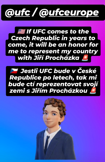 "Jestli UFC bude v České republice po letech, tak mi bude ctí reprezentovat svojí zemi s Jiřím Procházkou," poslal Standa Lukeš směrem k vedení UFC jasný vzkaz. Označil totiž hlavní UFC profil i profil UFC Europe.