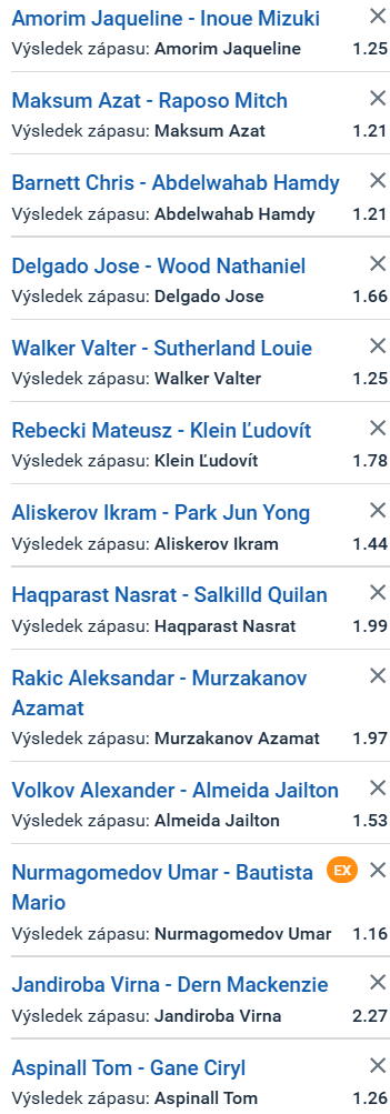 Rebecki má za sebou velmi náročný zápas s Chrisem Duncanem a do oktagonu se vrací poměrně brzy. To může ovlivnit jeho regeneraci a výbušnost. Klein měl delší přípravu a fyzicky se zdá být ve výborné formě. Klein má větší šanci kontrolovat tempo zápasu a využít dosah proti Rebeckiho tlaku. Pokud Klein předvede výkon z posledních zápasů, měl by z oktagonu odejít jako vítěz. Zde se zdají zajímavé dvě sázky - méně riskantní, že zápas skončí na body v kurzu 1,95 a druhá, že Klein zvítězí na body v kurzu 3,26.