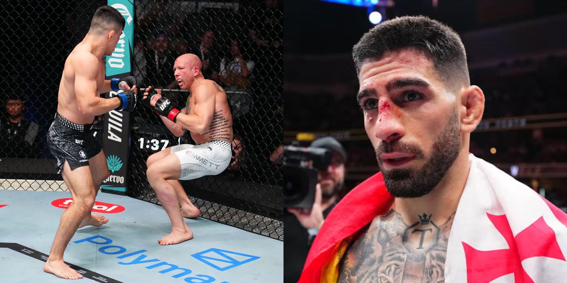 O hlavní zápas poslední UFC akce se postaral souboj Emmett vs Vallejos, od kterého se čekala poměrně vyrovnaná podívaná. Emmett už má sice to nejlepší za sebou, ale například v bitvě s aktuálním šampionem Topuriou dokázal, jaký je to držák. No, nyní padl už v prvním kole...