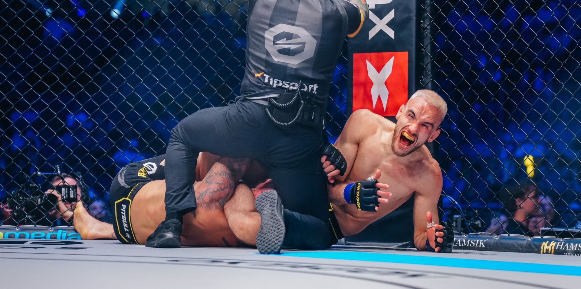 Domácí borec první kolo na body vyhrál, ale v tom druhé se Stanovský dostal na zem, kde soupeři nohama zamknul nohy a poté jej začal ostře loktovat, což rozhodčí po chvilce ukončil.
