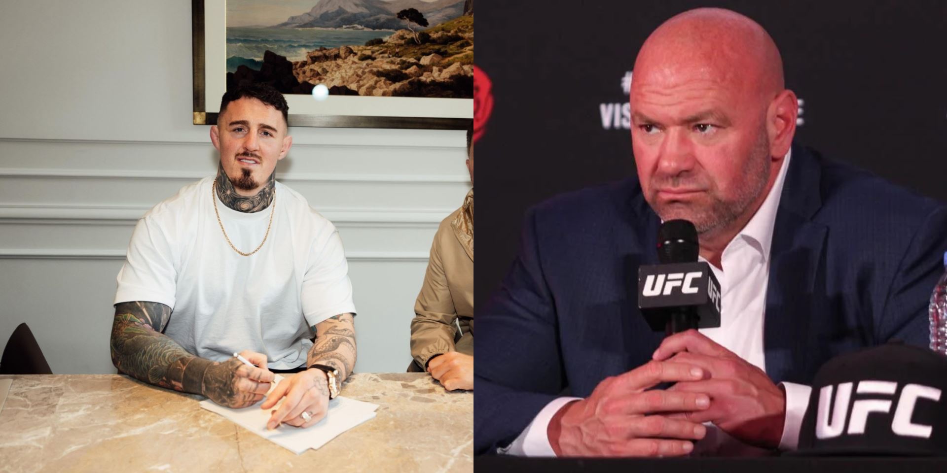 Šokující zpráva byla oznámena ve čtvrtek poté, co Aspinall naznačil, že se „vrací do práce“, když nastupoval do letadla. Ukázalo se, že cestoval do Monaka, aby podepsal smlouvu s promotérem Eddiem Hearnem, který se stane jeho manažerem, což zřejmě eskaluje probíhající "válku", kterou předseda Matchroom Boxing vede s generálním ředitelem UFC Danou Whitem poté, co založil Zuffa Boxing.