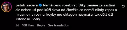 "Nemá cenu rozebírat. Díky trenére za zastání, ale neberu si pod kůži slova od člověka, co neměl nikdy zápas a mluvme na rovinu, kdyby mu OKTAGON nevynášel, tak dělá dál listonoše. Sorry," komentoval Záděra u příspěvku svého trenéra Vančury.